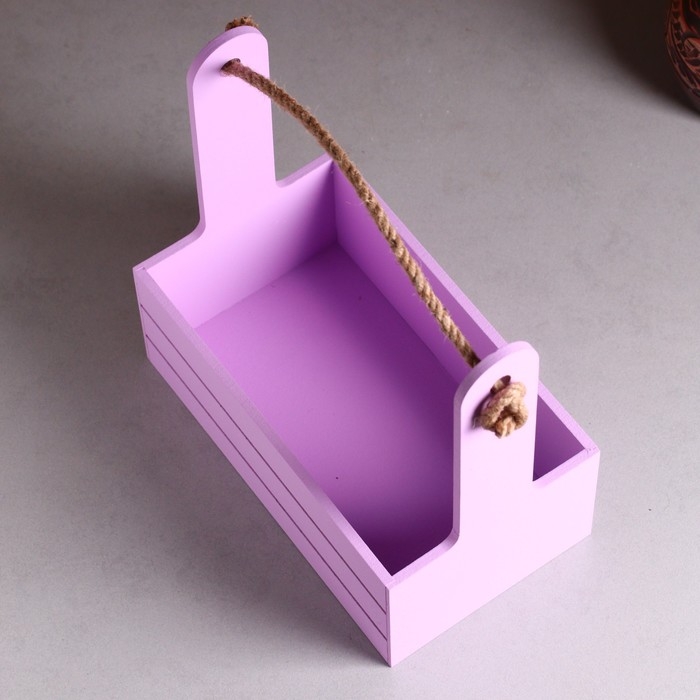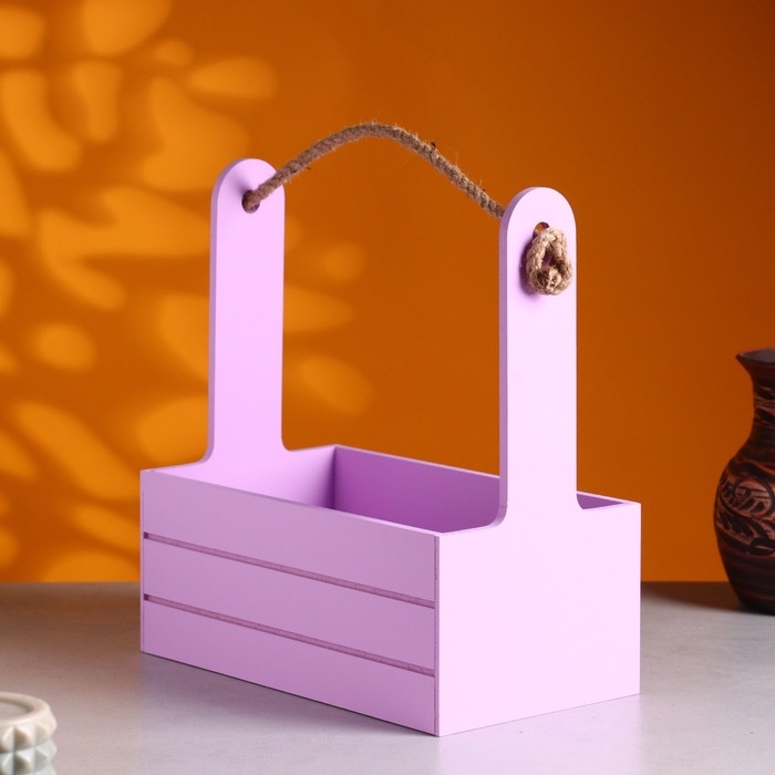 Кашпо деревянное 25.5×15×30 см "Аром", ручка канат, Сиреневый