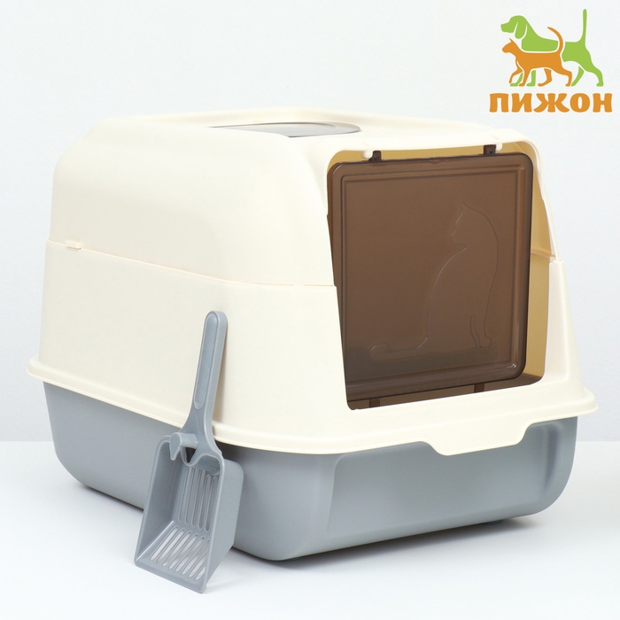 Туалет имеет пластиковый крытый корпус с высокими бортиками, чтобы предотвращает рассыпание наполнителя.