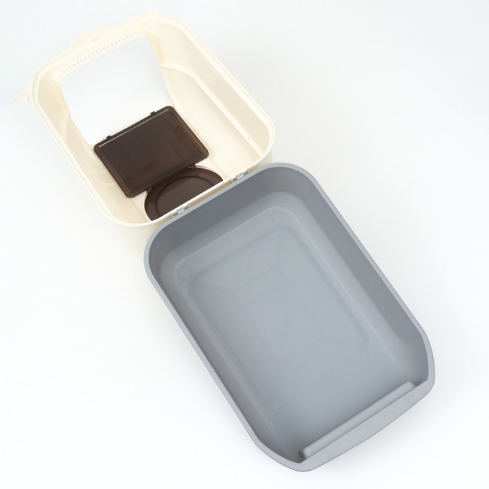 Прочные защёлки - крышка плотно крепится к лотку, что позволяет переносить туалет с наполнителем внутри, без риска просыпать содержимое.