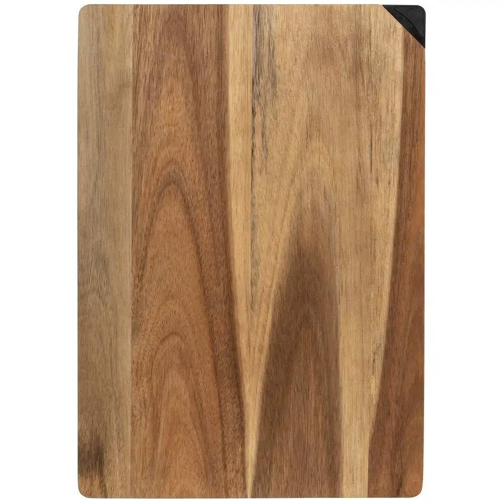 Доска изготовлена из акации — твердого и прочного дерева, привлекающего внимание своей живописной, неповторимой текстурой. Отличительной особенностью доски является встроенная точилка для ножей, которой удобно пользоваться во время готовки.