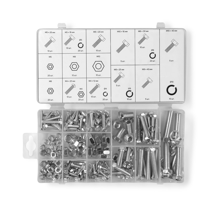 Набор болтов, винтов, гаек и гроверов ТУНДРА krep, 240 предметов