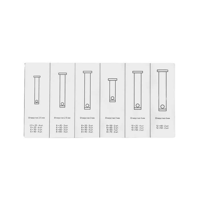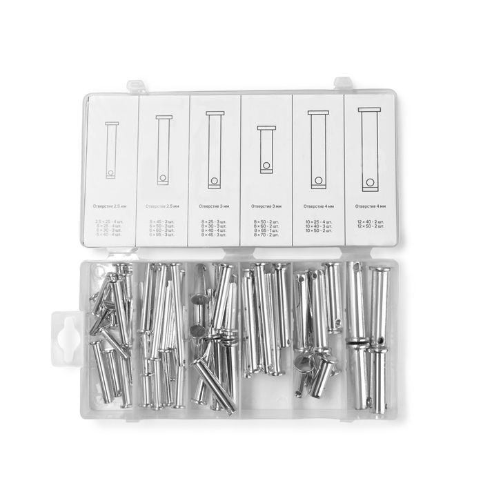 Набор штифтов с головкой и отверстим под шплинт ТУНДРА krep, 60 предметов