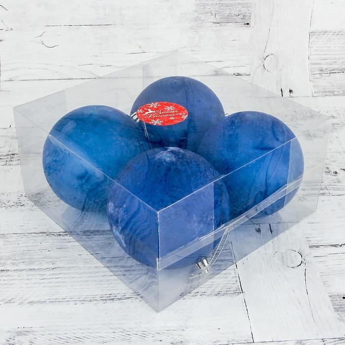Набор шаров пластик d-10 см, 4 шт "Туман" синий
