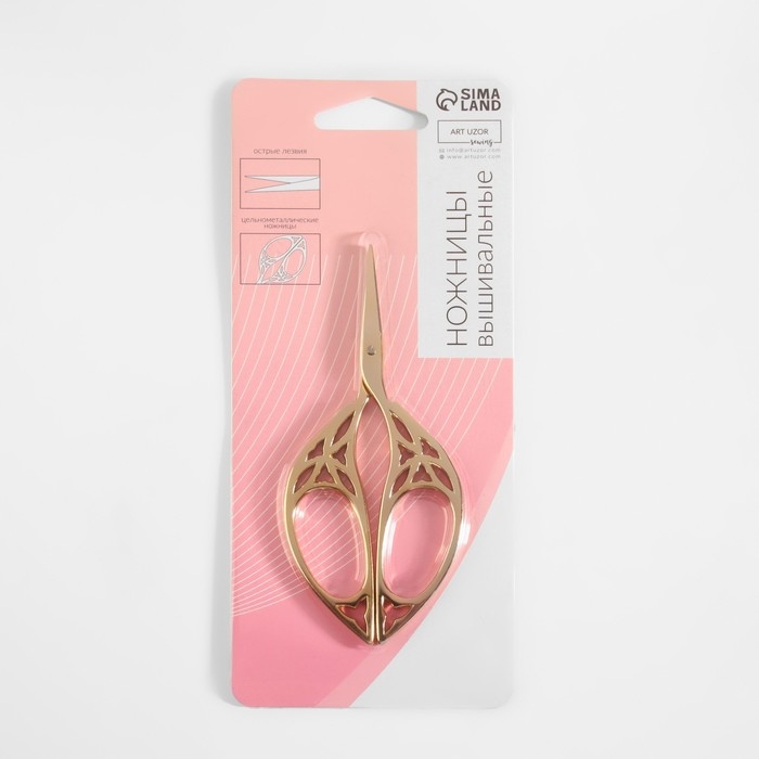 Ножницы для рукоделия «Лепесток», скошенное лезвие, 4,5", 10,5 см, цвет золотой