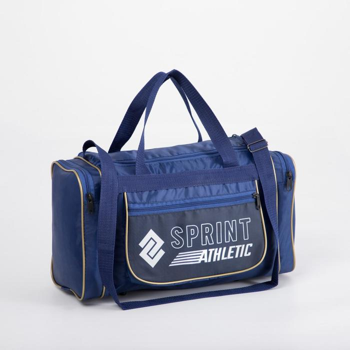 Сумка спортивная мужская на молнии, 3 наружных кармана, средний размер, цвет синий