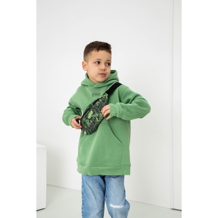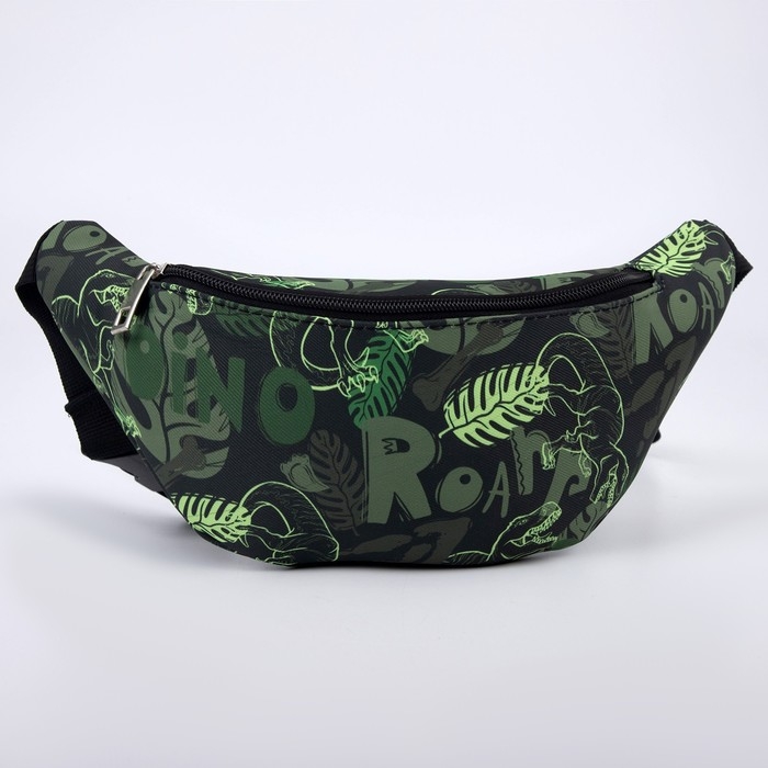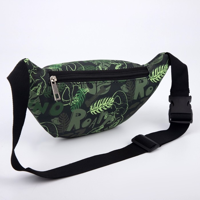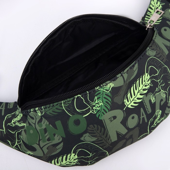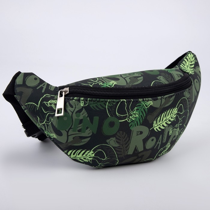Сумка детская поясная для мальчика «Динозавры», на молнии, наружный карман, цвет зелёный