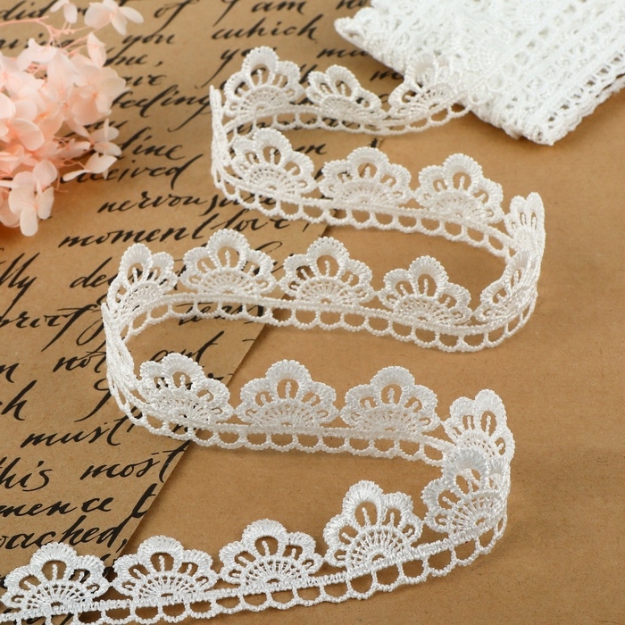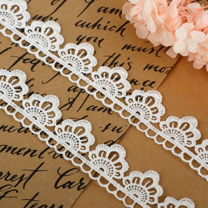 Кружево гипюровое, 30 мм × 9 ± 0,5 м, цвет белый