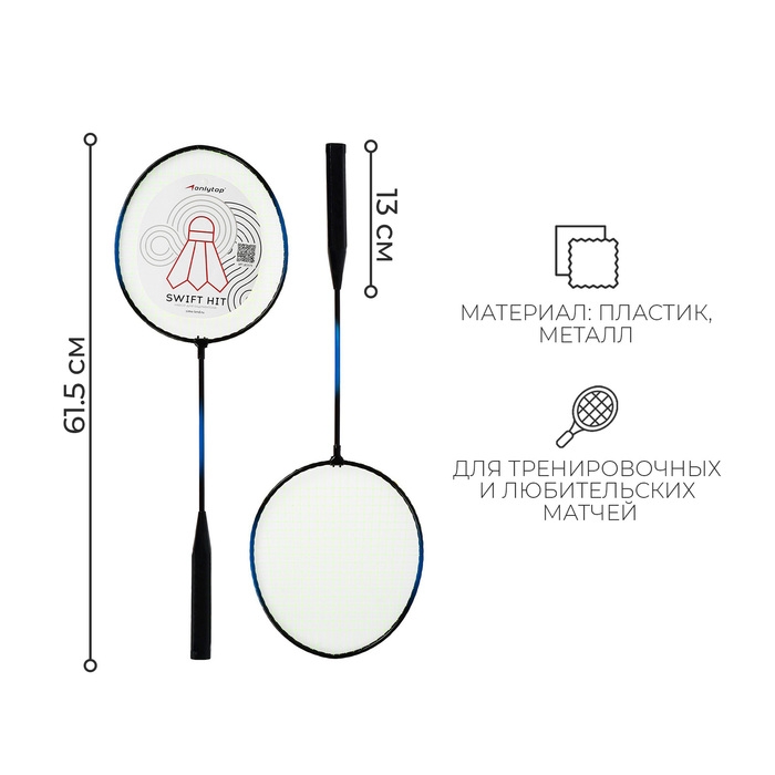 Ракетки для бадминтона ONLYTOP Swift hit, 2 шт., цвета МИКС