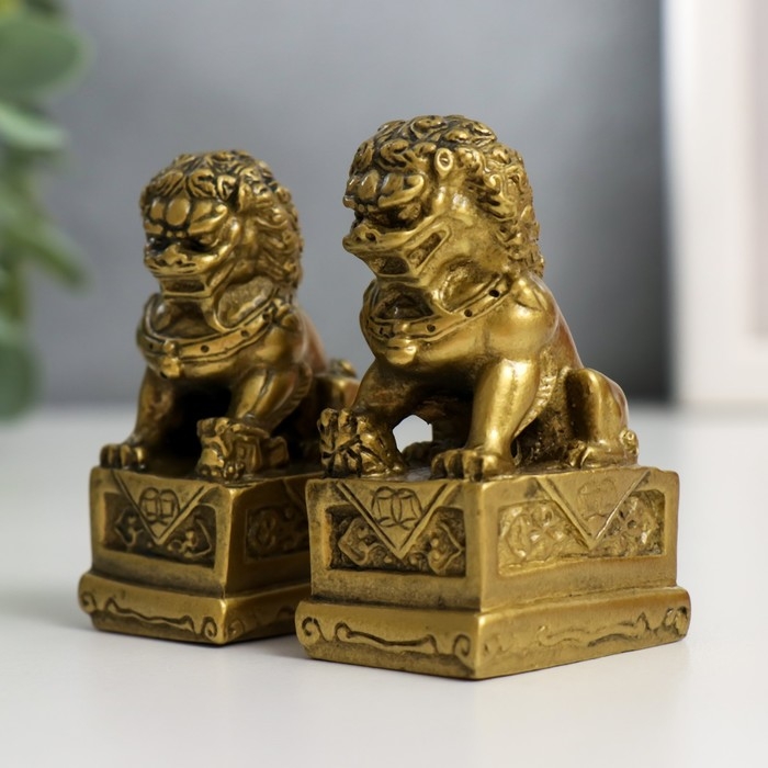 Нэцкэ бронза "Собаки Фу" (китайские львы Будды) (набор 2шт) 4,3 х 3,2 х 7 см - это символ надежных деловых связей, внешней и внутренней защиты домочадцев. Став счастливым обладателем такого талисмана, помните важное правило: самца ставят слева от входной двери (если смотреть изнутри наружу), а самку справа.