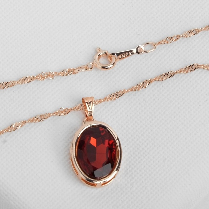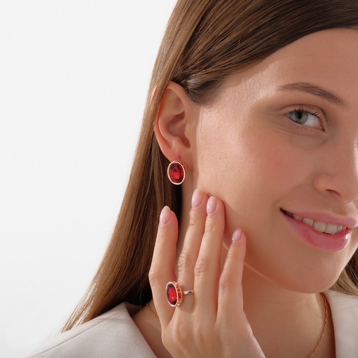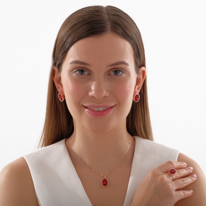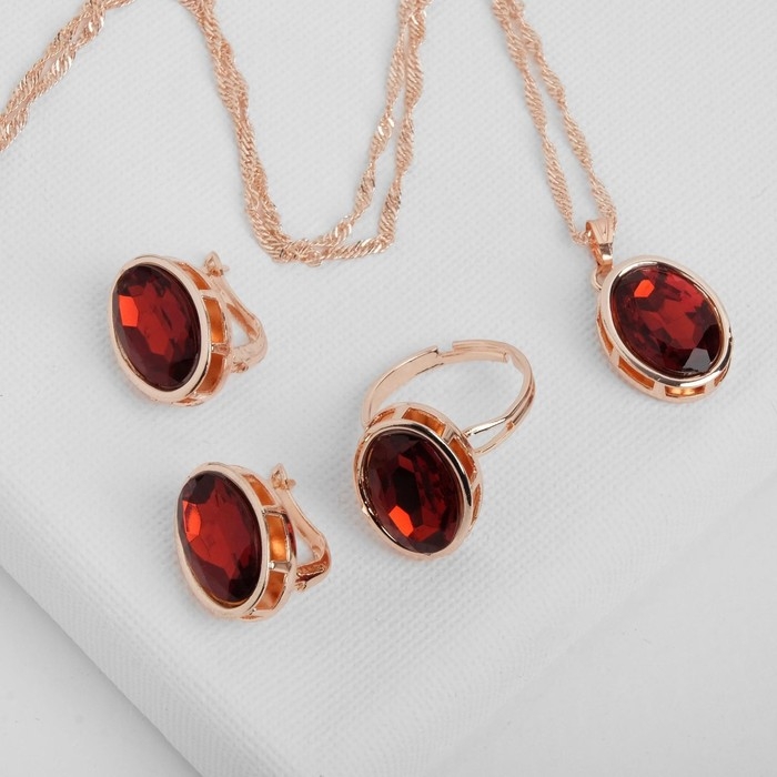 Гарнитур 3 предмета: серьги, кулон, кольцо безразмерное «Эдель» овал вытянутый, цвет красный в золоте, 45 см