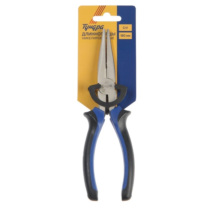 Длинногубцы ТУНДРА, CrV, никелированные, двухкомпонентные рукоятки, 180 мм