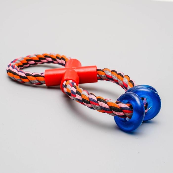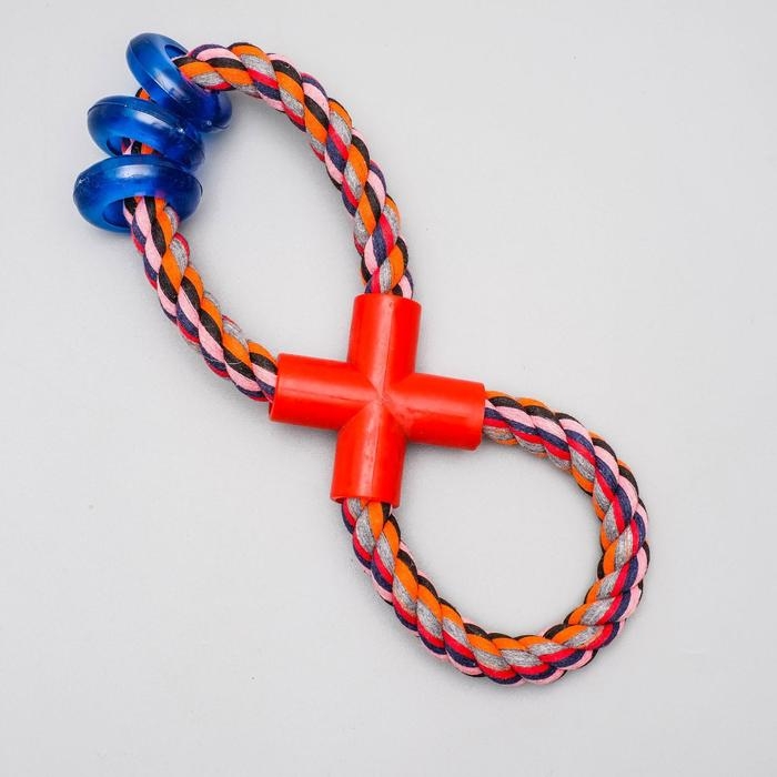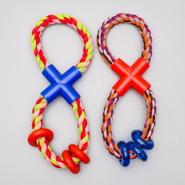 Игрушка тренировочная канатная "Восьмёрка с кольцами", до 25 см, до 140 г, микс цветов