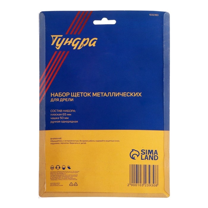 Набор щеток металлических для дрели ТУНДРА, плоская 65 мм, чашка 50 мм + щетка однорядная