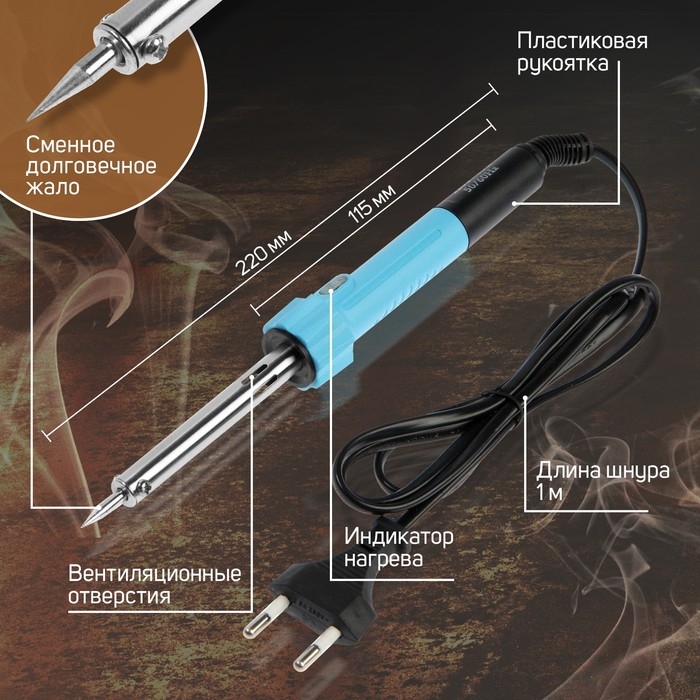 Паяльник ТУНДРА, индикатор работы, долговечное жало, 40 Вт, 220 В