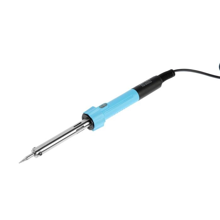 С помощью светового индикатора, встроенного в инструмент можно с лёгкостью определить нагрев инструмента. Паяльник питается от сети в 220 В. и имеет мощность в 60 Вт, благодаря чему происходит быстрый нагрев жала. Специальный изоляционный слой предотвращает случайный контакт с токоведущей частью во время работы с инструментом.