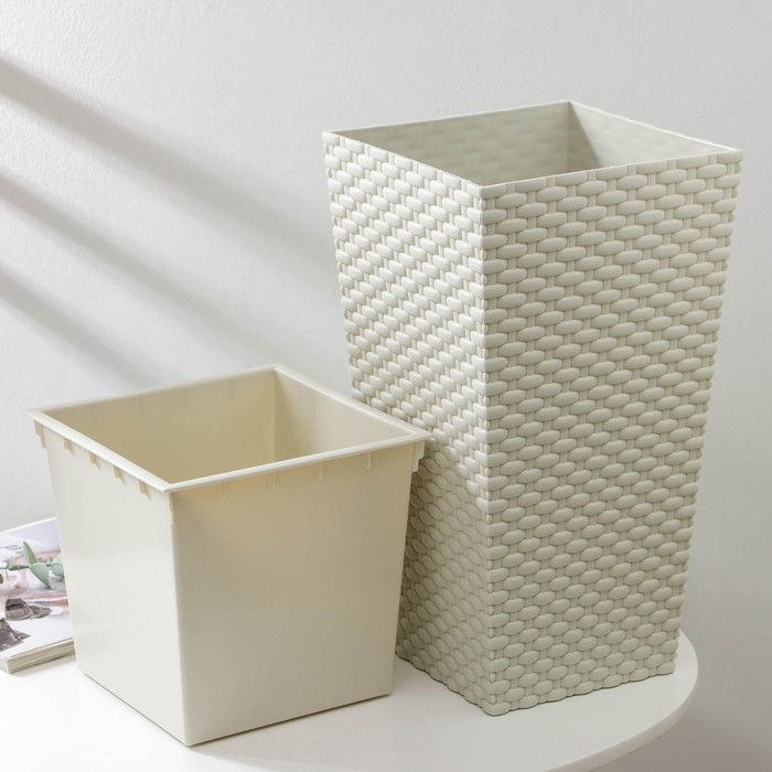 Кашпо для цветов со вставкой «Ротанг», вставка 4,9 л, цвет белый