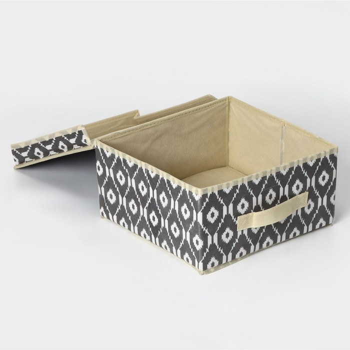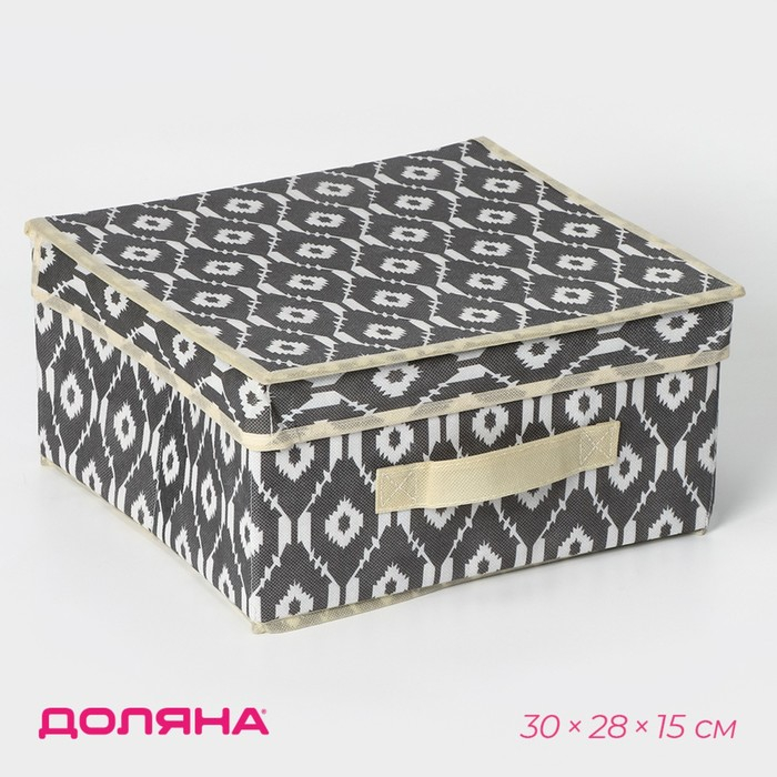 Короб стеллажный для хранения с крышкой Доляна «Ромбы», 30×28×15 см, цвет серый