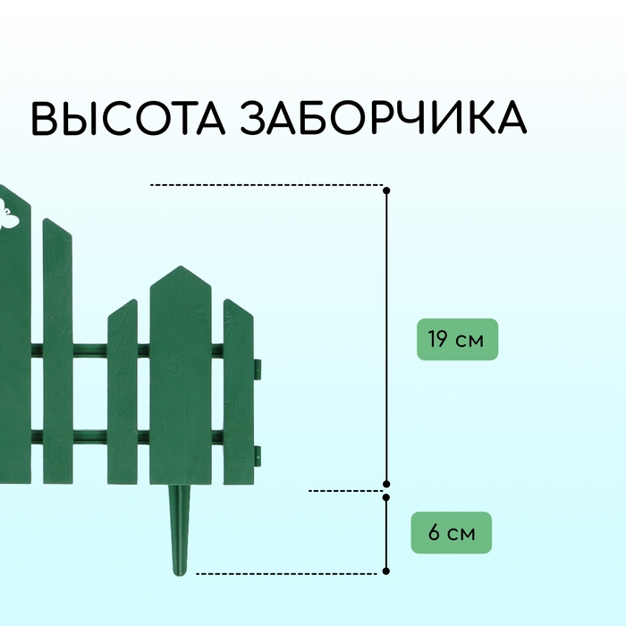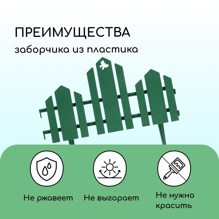Ограждение декоративное, 25 × 180 см, 5 секций, пластик, зелёное, «Классика»
