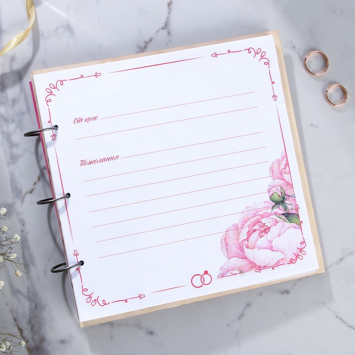Книга пожеланий на свадьбу в деревнной обложке «Резная».