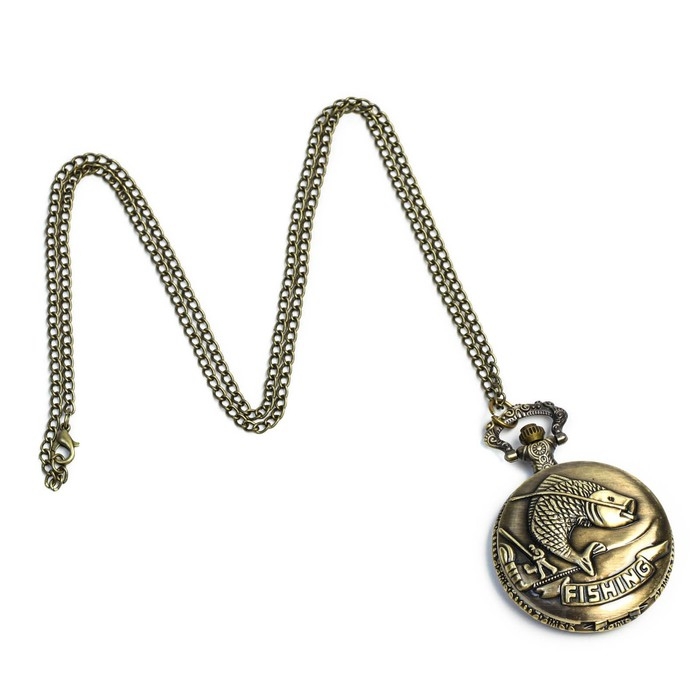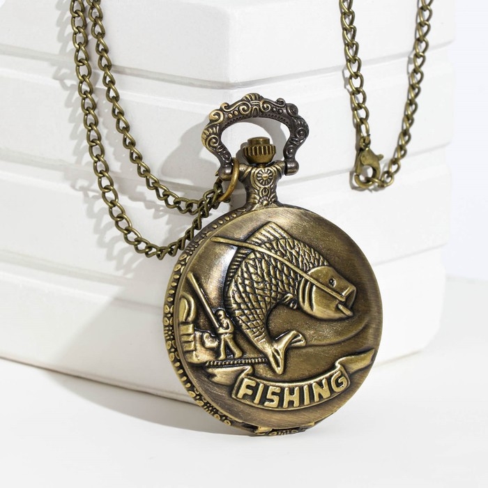 Часы карманные "Рыбалка", кварцевые, d-4.5 см, цепочка l-80 см