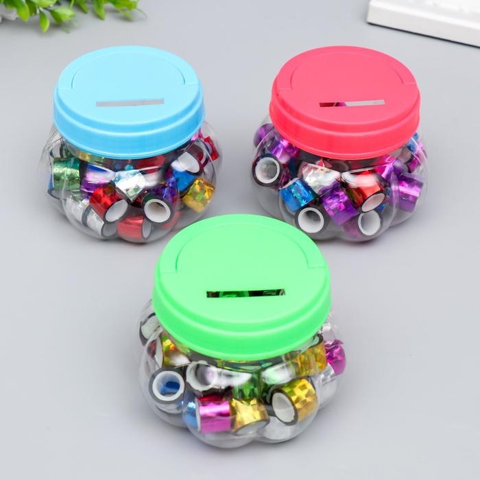 Клейкая лента пластик в банке "Голография" (набор 40 шт) цвета МИКС 1,2смх2,8м 7,5х8,5х8,5см