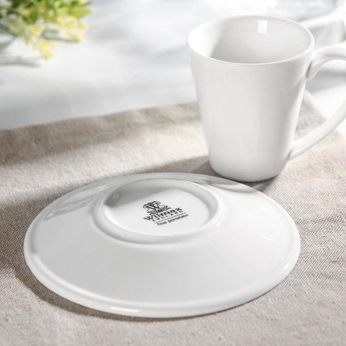 Кофейная пара фарфоровая Wilmax, 2 предмета: кружка 110 мл, блюдце d=13,2 см, цвет белый