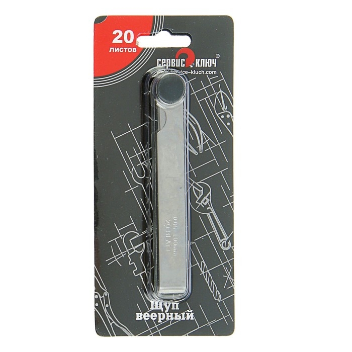 Щуп веерный "СЕРВИС КЛЮЧ", 0.05-1.0 мм, шаг 0.05 мм, 20 листов, в блистере