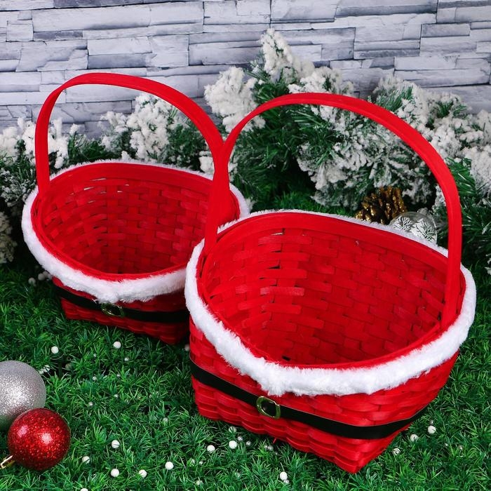 Набор корзин «Красная шубка», 2 шт: 28×22×11/33,5 см, 22×17×9/27 см, шпон