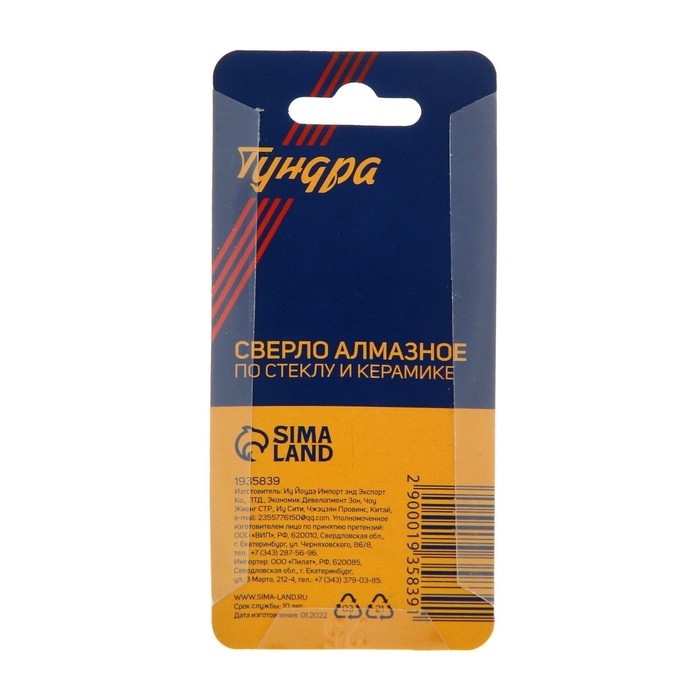 Сверло алмазное по стеклу и керамике с трехгранным хвостовиком ТУНДРА предназначено для совместного использования с дрелью.