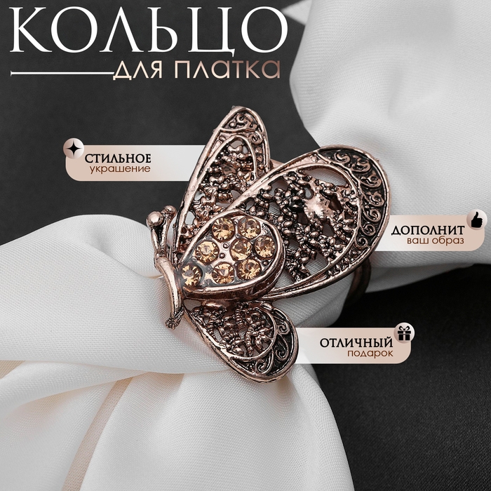Кольцо для платка «Бабочка», цвет золото в черненом золоте