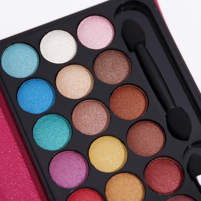 Компактный набор косметики удобно носить с собой, чтобы поправлять макияж в течение дня. Также его можно преподнести в качестве подарка на любой праздник благодаря яркому дизайну. Набор имеет удобную форму и широкий выбор средств для макияжа: