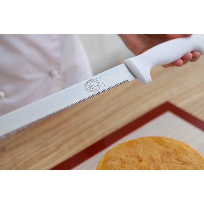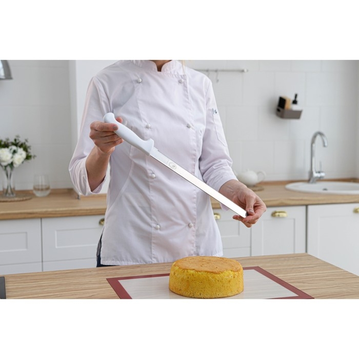 Нож для бисквита, мелкие зубчики, ручка пластик, рабочая поверхность 29,5 см, толщина лезвия 1,9 мм, цвет белый