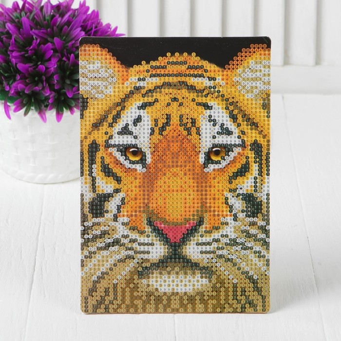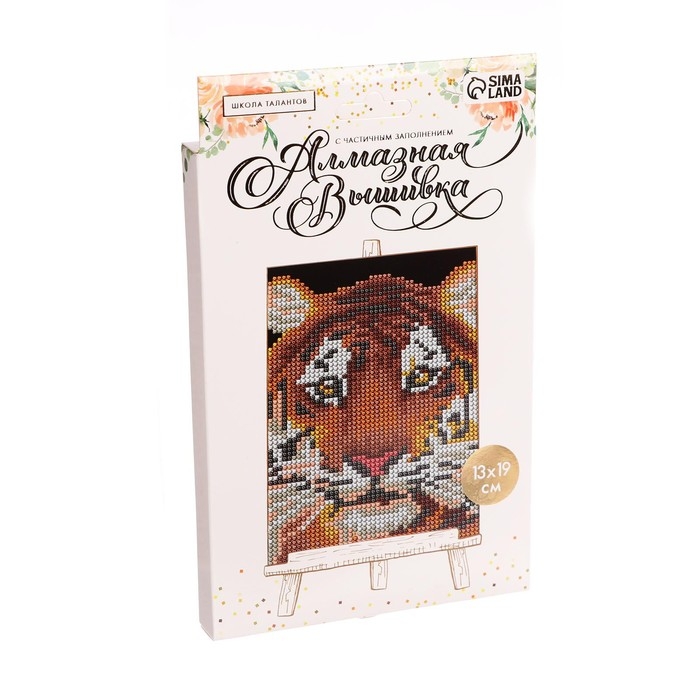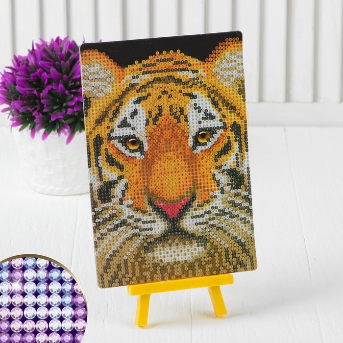 Алмазная мозаика с частичным заполнением на подставке «Тигр», 13 х 19 см, картон