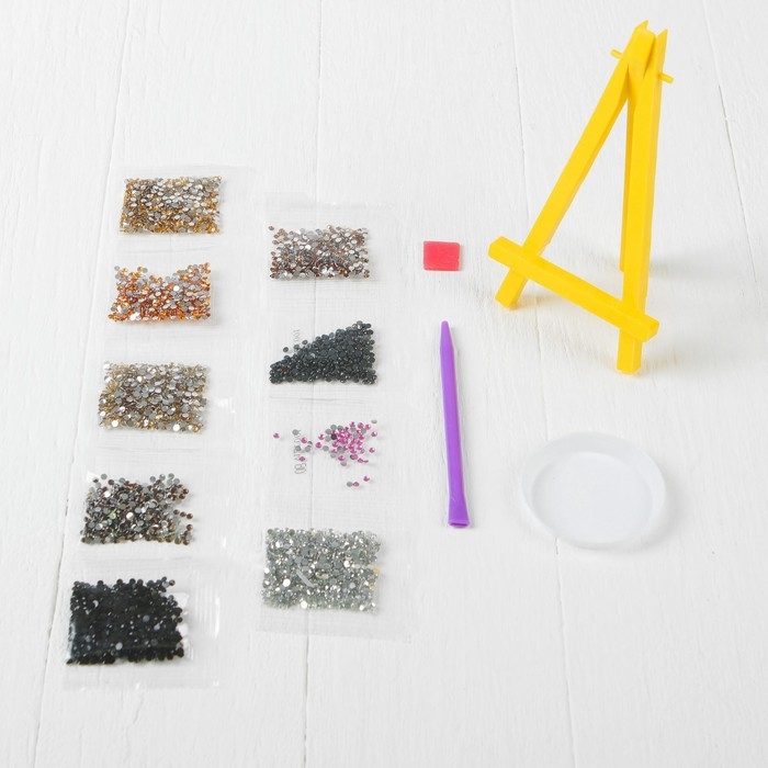 В данном наборе есть небольшой мольберт, с ним готовое творение можно удобно расположить на полке или столе без дополнительных креплений.