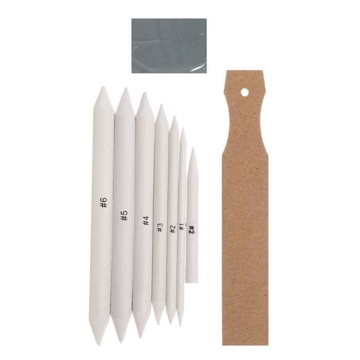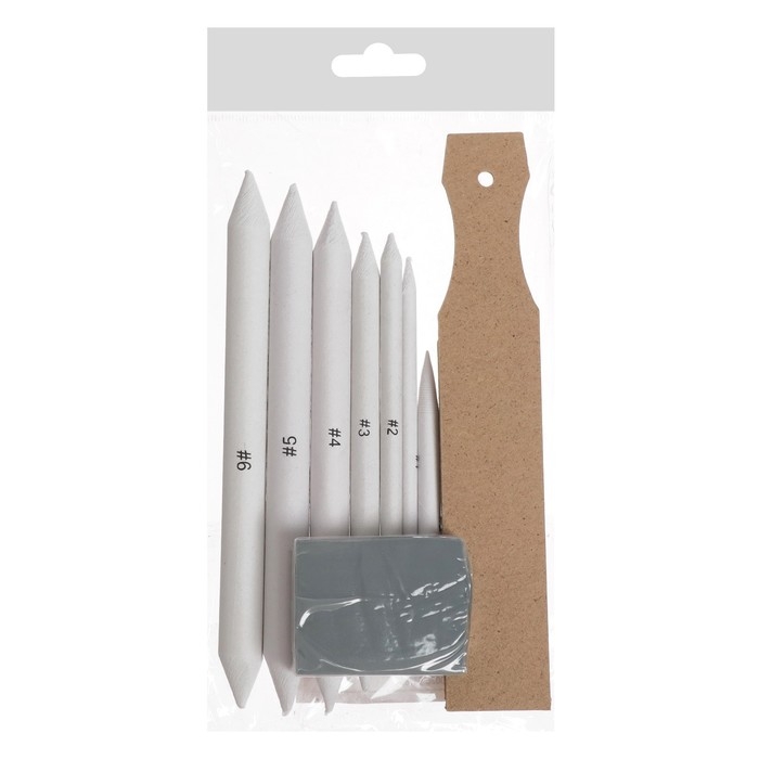 Набор инструментов для растушевки: в наборе 8 штук растушевок различного диаметра, наждачная бумага - 12 листов, ластик.