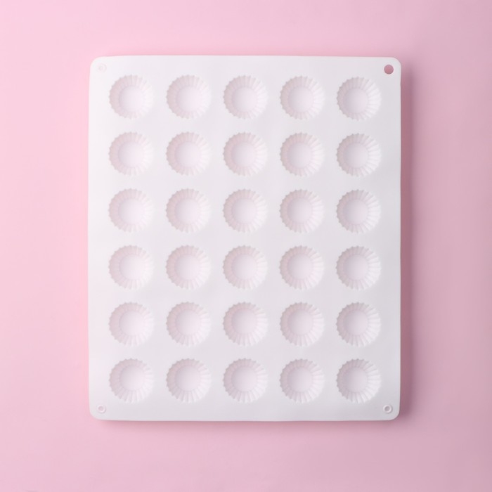 Форма для конфет и шоколада Доляна «Круг. Риб», силикон, 28×24,3×2 см, 30 ячеек (d=3,3 см), цвет белый