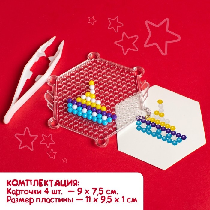 - С помощью пинцета выложите цветные шарики по образцу.