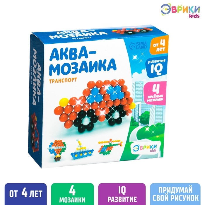 Аквамозаика от торговой марки «Эврики» поможет весело и с пользой провести время. Ребёнок соберёт 4 объёмных фигурки из шариков-пикселей, потренирует мелкую моторику и внимание.