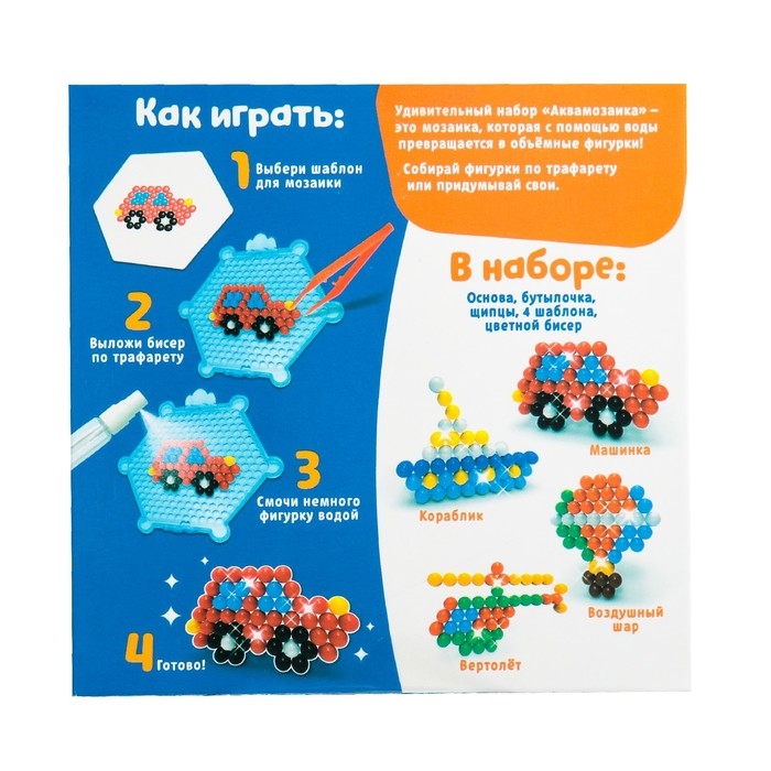 Аквамозаика для детей «Транспорт», 4 фигурки