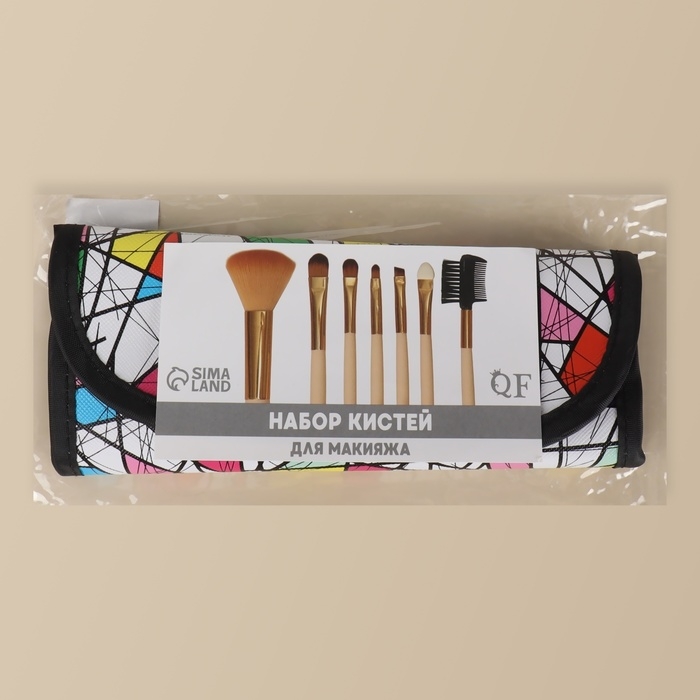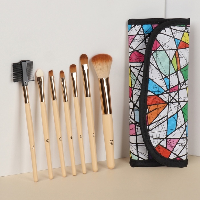 Набор кистей для макияжа «Чёрточки», 7 предметов, чехол на кнопке, разноцветный