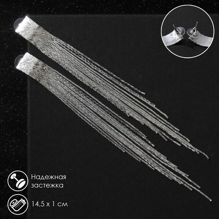 Серьги висячие «Голливуд» блеск нитей, цвет серебро, 14,5см
