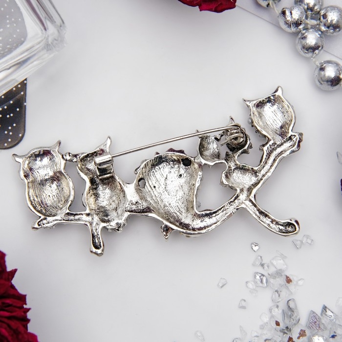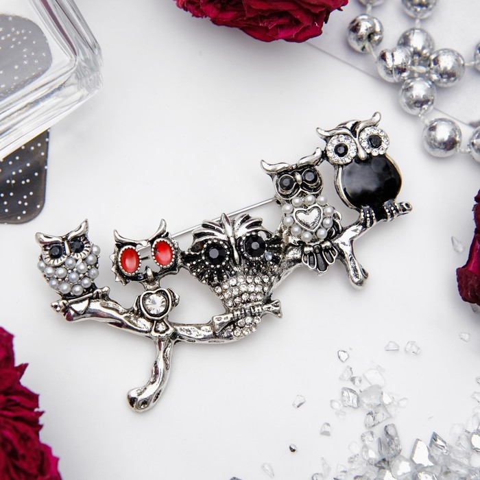 Брошь «Совиная ветвь», цветная в черненом серебре