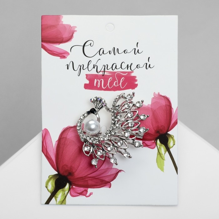 Брошь «Жар-птица» с жемчужиной, цвет бело-радужный в серебре