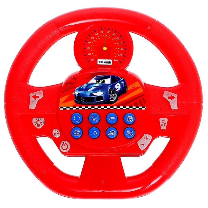 Яркий музыкальный руль – лучшая игрушка для детей, которые любят играть в водителя автомобиля. Изготовлен из прочного высококачественного пластика. Игрушка оснащена развивающими кнопками со звуковыми эффектами. В верхней части руля находится наклейка, имитирующая настоящий спидометр.