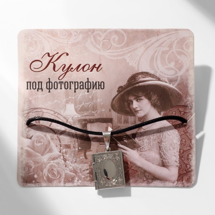 Кулон на шнурке «Для фото» книга, цвет серебро на чёрном шнурке, 45 см