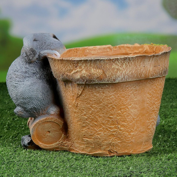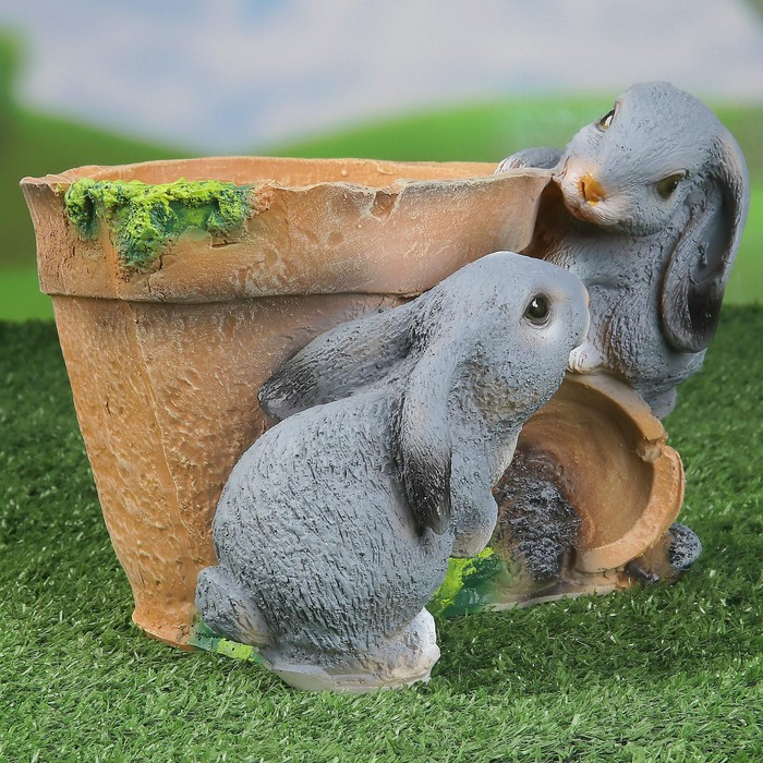 Фигурное кашпо "Зайцы у горшочка" 17см