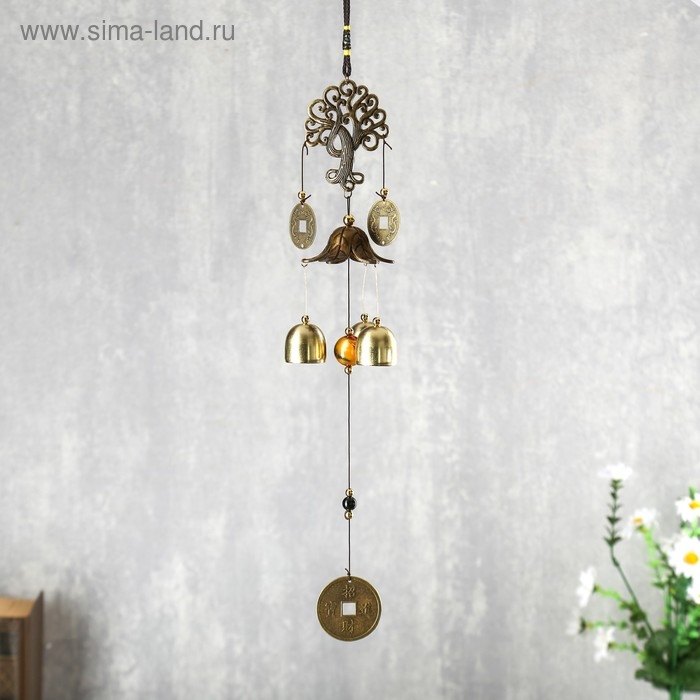 Музыка ветра металл "Дерево" 3 колокольчика, 3 монеты 45 см