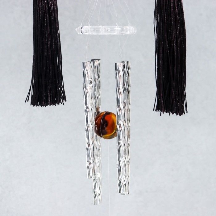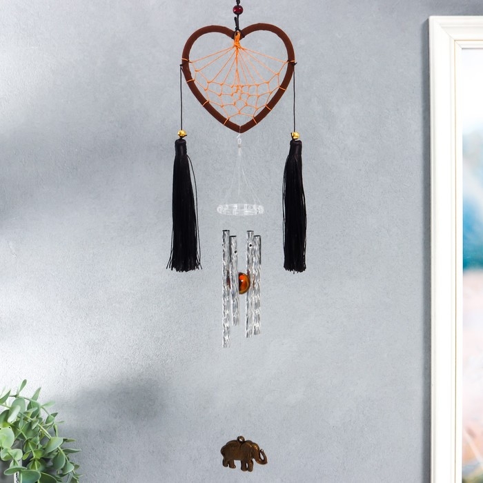 Музыка ветра с ловцом снов "Сердце с кисточками и слон" 4 трубки d=10,5 длина 45 см