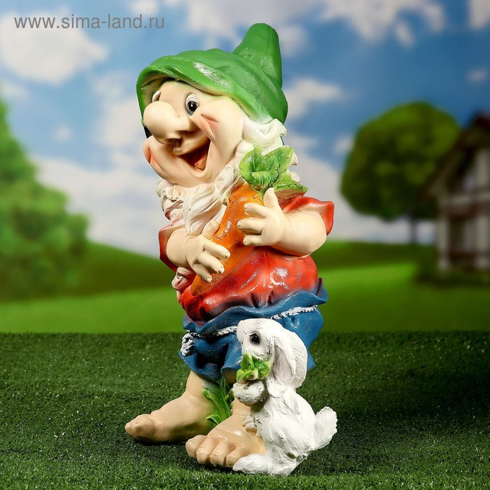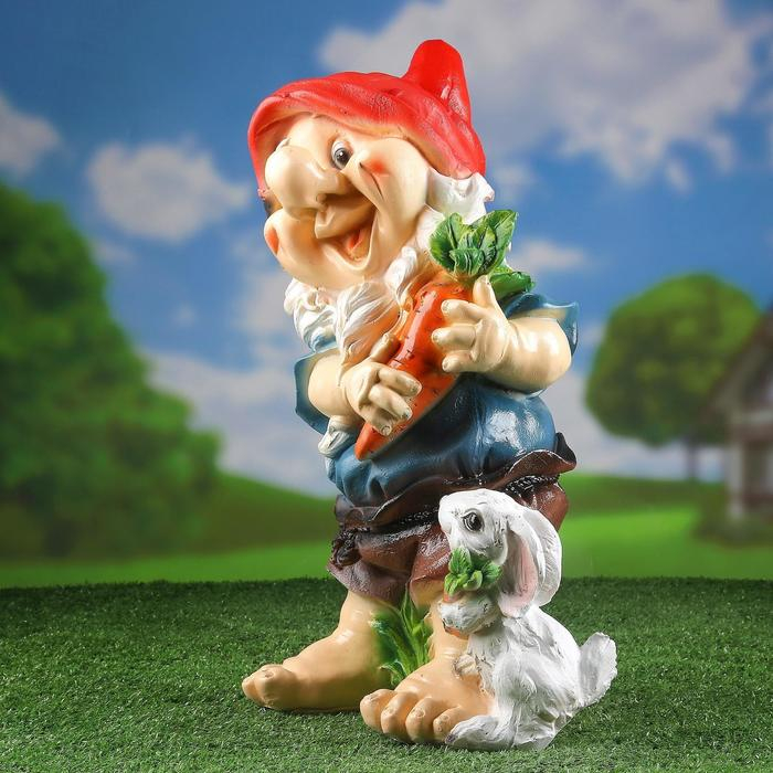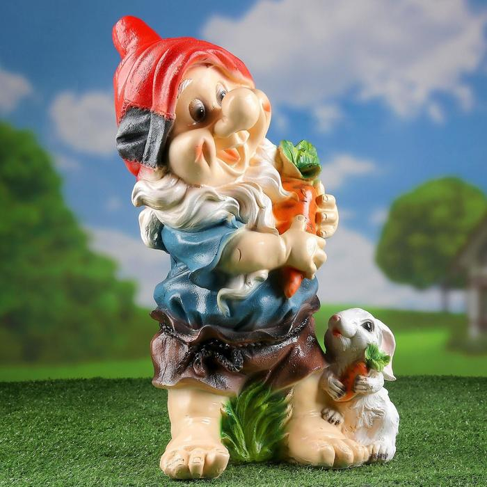 Садовая фигура "Гном с зайцем и морковкой" 46см МИКС