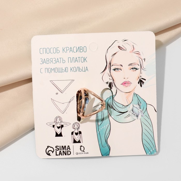 Кольцо для платка «Павлин», цвет бело-зелёный в золоте